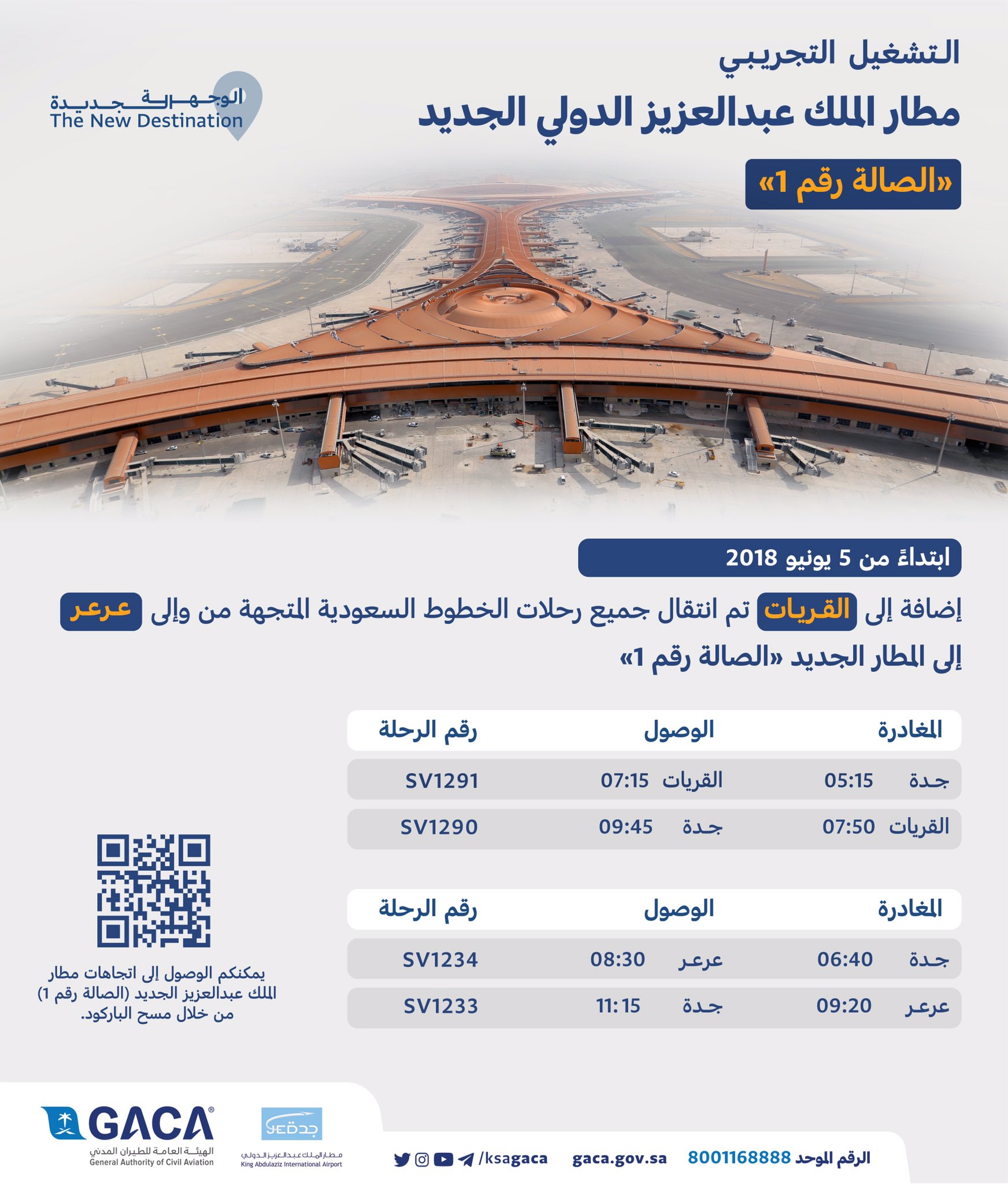مطار الملك عبدالعزيز الدولي، صالة رقم 1 (المطار الجديد). 43 وجهة من مطار جدة الجديد. تأسس مطار الملك خالد عام. كشفت صور، حصلت عليها سبق، الاستعدادات الأخيرة لبدء التشغيل التجريبي لمطار الملك عبدالعزيز الدولي الجديد في محافظة جدة. مطار الملك خالد الدولي (إياتا: